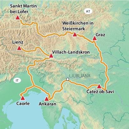 Diese Fahrradreise führt Sie durch Österreich, Italien und Slowenien. Sie radeln durch bergige Landschaften, vorbei an den schönsten Seen Kärntens und durch die Flusstäler der Steiermark. Ganz besonders sind die Routen des Alpe Adria Radwegs, auf denen Sie die Adriaküste und die slowenischen Weinberge entdecken. Neben dem Genuss des Radfahrens gibt es natürlich auch Raum für andere Aktivitäten. Wie wäre es mit einer romantischen Gondelfahrt durch die Kanäle von Venedig?