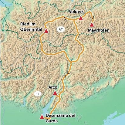 Von Österreich nach Italien! Auf dieser Reise stehen das Fahrrad und die Natur im Mittelpunkt. Darüber hinaus nehmen wir uns Zeit für den Besuch besonderer Orte wie Borghetto sul Mincio, der Swarovski Kristallwelten und dem Parco Grotta Cascata Varone. Wir starten im österreichischen Tirol in der Nähe von Innsbruck. Anschließend reisen wir in den Süden des Gardasees, um dann wieder zurück in nördliche Richtung zu fahren. Unterwegs sehen wir wunderschöne Flüsse, Seen und wilde Naturschönheiten. Eine gute Kondition ist auf jeden Fall wünschenswert.