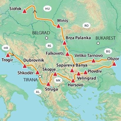 Der Ohridsee, die Rila-Klöster und die eindrucksvolle Festung von Belogradtschik sind nur einige Höhepunkte dieser Reise quer durch den Balkan. Sie besuchen geschichtsträchtige Städte wie Skopje und Plovdiv und erleben Bergdörfer, Seen, Schluchten und Wasserfälle. Natürlich darf auch das Probieren der regionalen Spezialitäten und Weine nicht fehlen. Eine abwechslungsreiche Reise voller Kultur, Natur und authentischer Eindrücke.