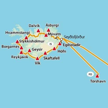 Tag 6Im Hafen von Tórshavn (ca. 5 km) gehen wir an Bord der Fähre nach Seyðisfjörður in Island. Am Abend genießen wir ein Dinner im Buffetrestaurant der Fähre.