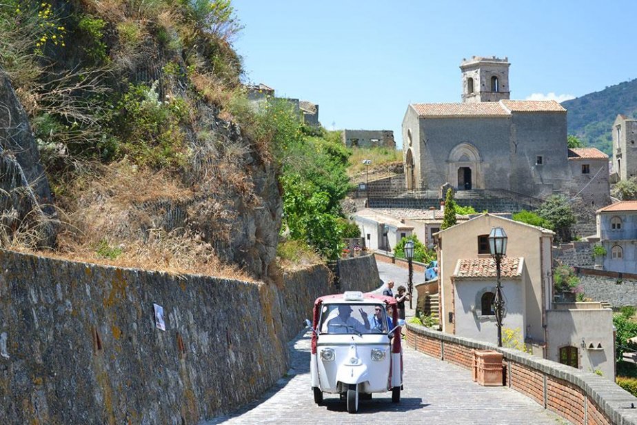 Tag 24 Busausflug nach Taormina. Hier besuchen wir unter anderem das griechische Theater. Danach fahren wir weiter zum Bergdorf Savoca, das als Drehort für den Film ''Der Pate'' gedient hat.